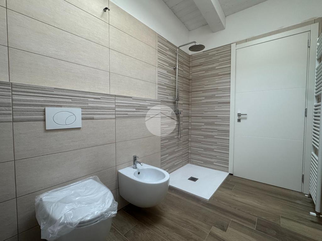 Un secondo bagno con box doccia serve l'intera abitazione, assicurando praticità.