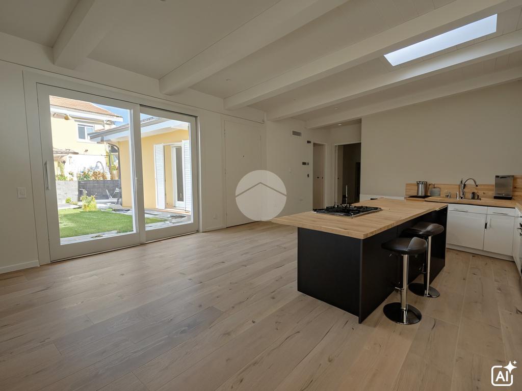 L'ingresso, situato al piano terra, si apre su un ampio soggiorno con cucina a vista, ideale per momenti di convivialità.